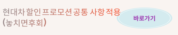 현대차에서 공통으로 할인 적용 이벤트를 안내합니다. 조금이라도 더 할인을 챙기셔서 몇 십만 원이라도 손해보지 않았으면 좋겠습니다.