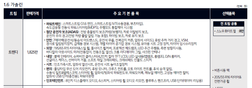 선루프는 아쉽게도 선택할 수 없고 윗 옵션을 선택해야 구입할 수 있습니다. 이것 하나가 유일한 단점입니다. 하지만 선루프는 호불호가 있는 옵션이죠.