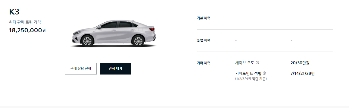 K3 할인 프로모션을 기본입니다. 세이브 오토 20에서 30만 원입니다.