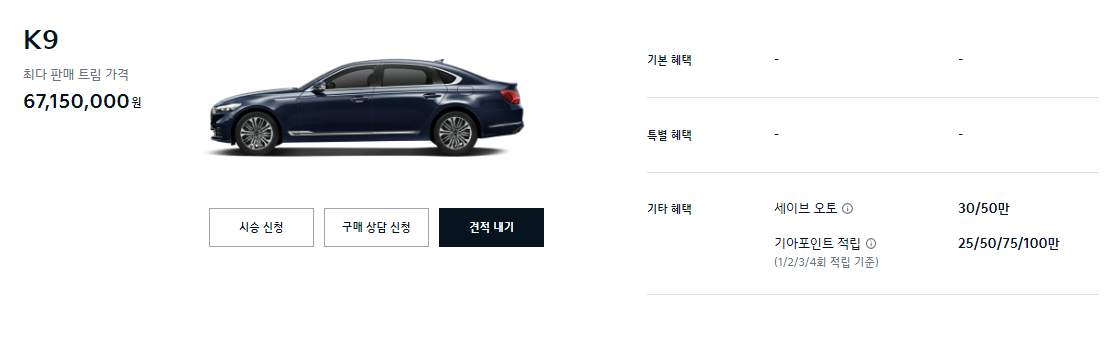 K9는 기아가 자랑하는 고급 세단입니다. 가성비 뛰어나다고 알려진 K9 깡통 기본 차량 선택 이유와 가격표, 할인을 보니 고급 세단의 뒷좌석까지.